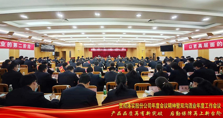 揚帆啟航新征程,踏浪前行向未來。2月21日上午8點18分,公司在辦公樓西二樓會議室召開貫徹落實股份公司年度會議精神暨雙溝酒業(yè)年度工作會議。股份公司副總裁、公司黨委書記、總經(jīng)理李玉領(lǐng)對股份公司年度會議精神進行宣貫落實,并全面部署雙溝酒業(yè)2023年工作,公司黨委副書記耿忠祥總結(jié)回顧2022年工作成績,公司副總經(jīng)理崔鳳元主持會議,各部門、車間及派駐機構(gòu)中層助理以上人員、班科長代表和受表彰的單位、員工代表參加會議。